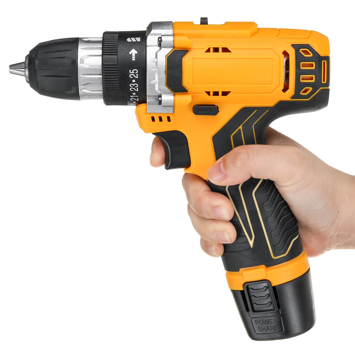 This electric drill is powered by a rechargeable Lithium Battery, available in 12V, 18V, or 21V options. It features a high-efficiency motor that delivers up to 32N.m of torque and a maximum no-load speed of 1350RPM. The drill is designed with a 10mm chuck and offers 25+1 torque stage settings, providing high precision for a variety of tasks.