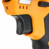 The drill is presented in a vibrant orange color, adding a touch of style to your tool collection. It also includes a built-in LED work light, ensuring you can see clearly even in darker workspaces. The ergonomic comfort grip handle is designed to provide ideal balance and tool control, making it easier to handle for extended periods.