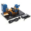 The Mini Wood Lathe is a perfect blend of functionality and aesthetics, with its striking blue and golden color scheme. It operates on a power input of DC12V 2A, with a power output of 24W. The AC adapter is compatible with AC 100-240V.