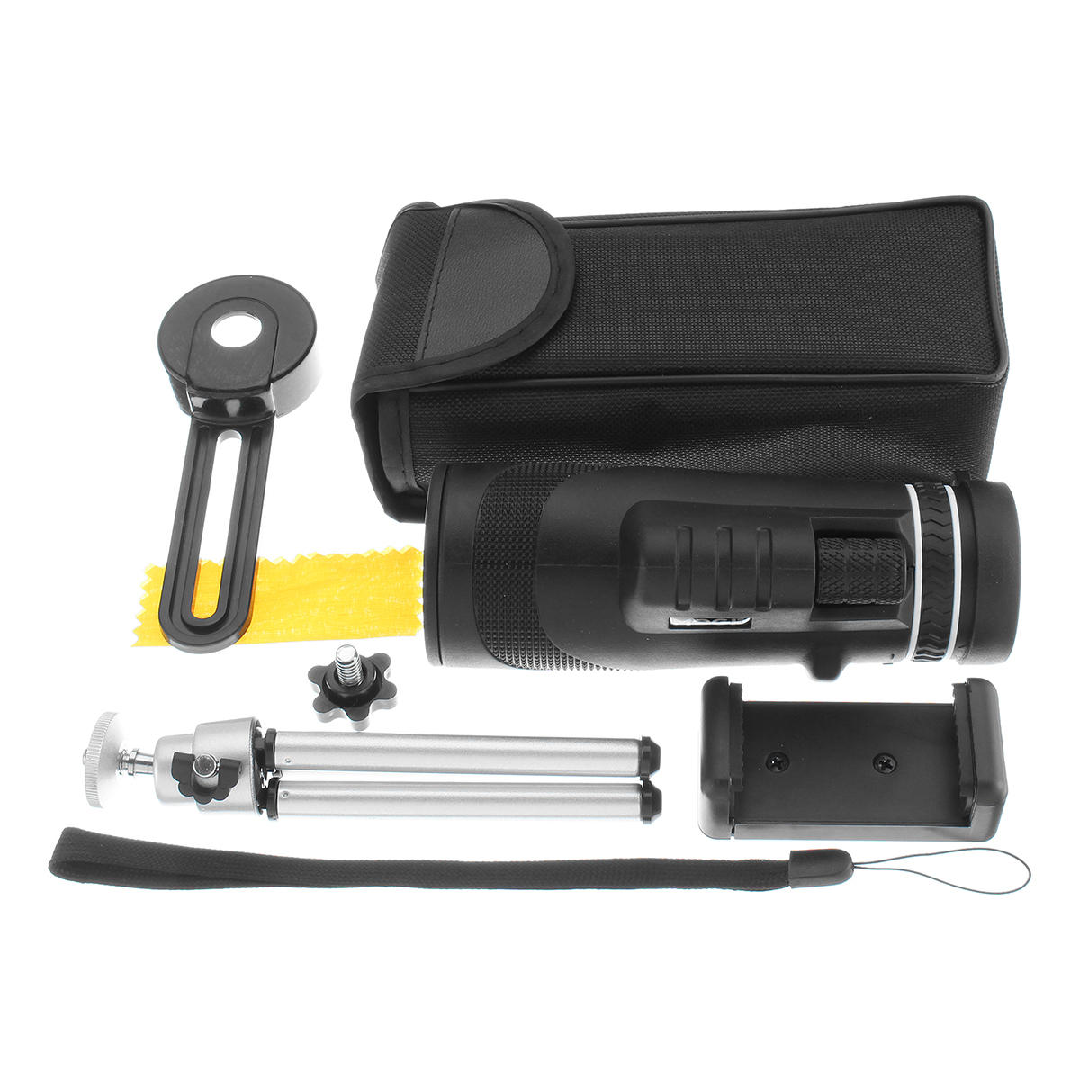 To assist in carrying, a lanyard is included. Further contributing to usability and stability, the telescope comes equipped with a tripod and mobile phone bracket. This feature allows for hands-free operation and stable photo capture.