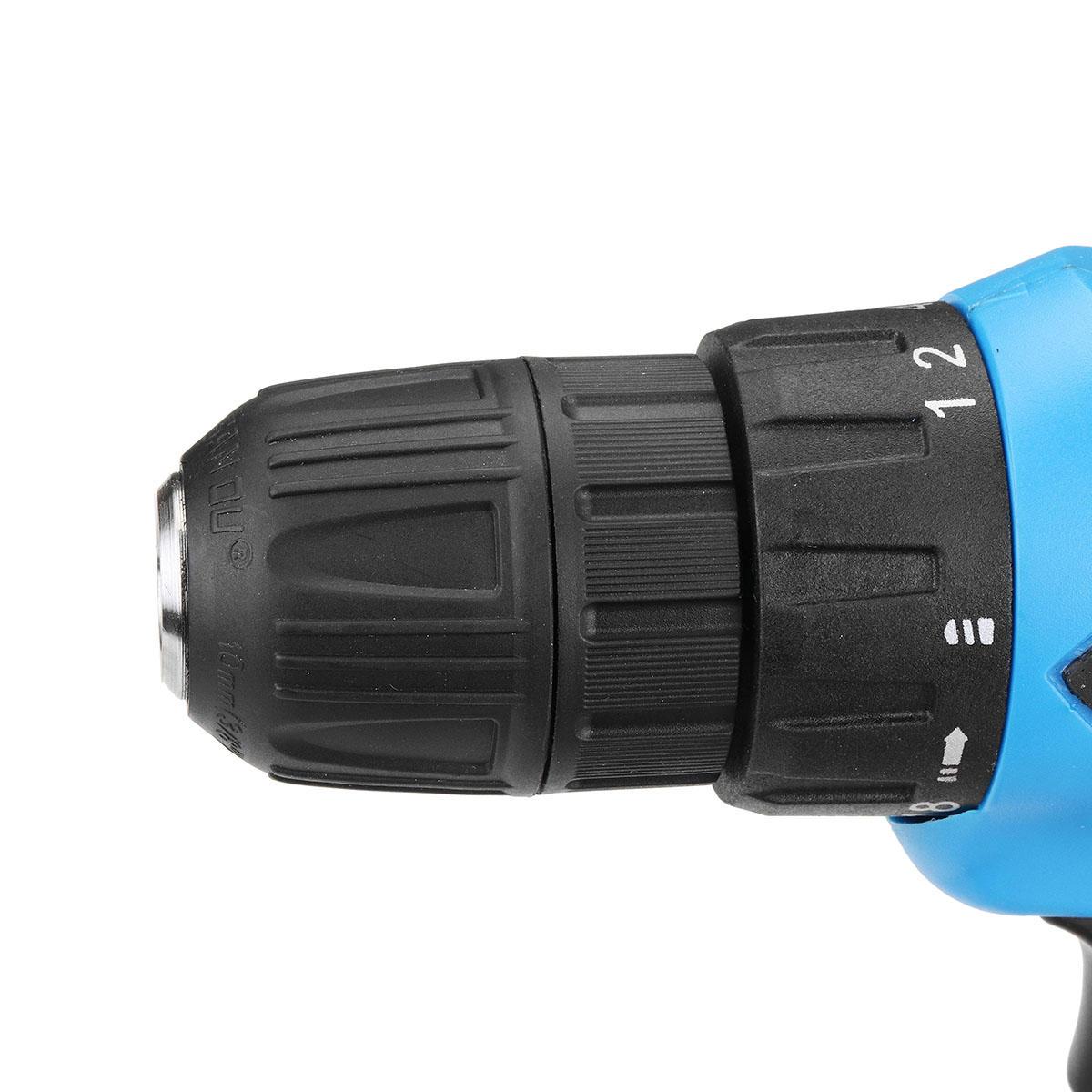 – The forward and reverse rotation can be controlled with a button; pushing it to the right will rotate the screwdriver anticlockwise, pushing it to the left will rotate it clockwise, and pushing it to the middle will lock the switch.