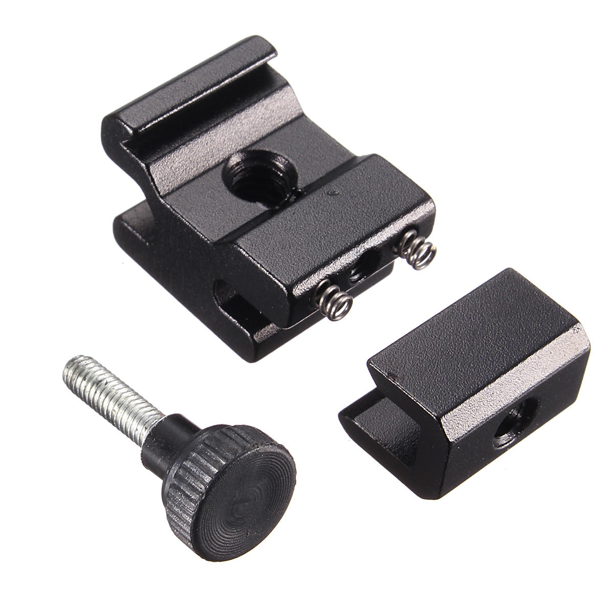The product features a standard 1/4 screw hole which allows it to be easily attached directly to any tripod PTZ screw, or any other accessory with a 1/4 screw head for secure flash fixation. This product is crafted from durable aluminum alloy and is designed to fit universally.