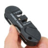 The sharpener is made from durable Tungsten steel, ABS, and Electroplating rods. It measures 8×2.7×1.2cm and comes in a sleek black color.