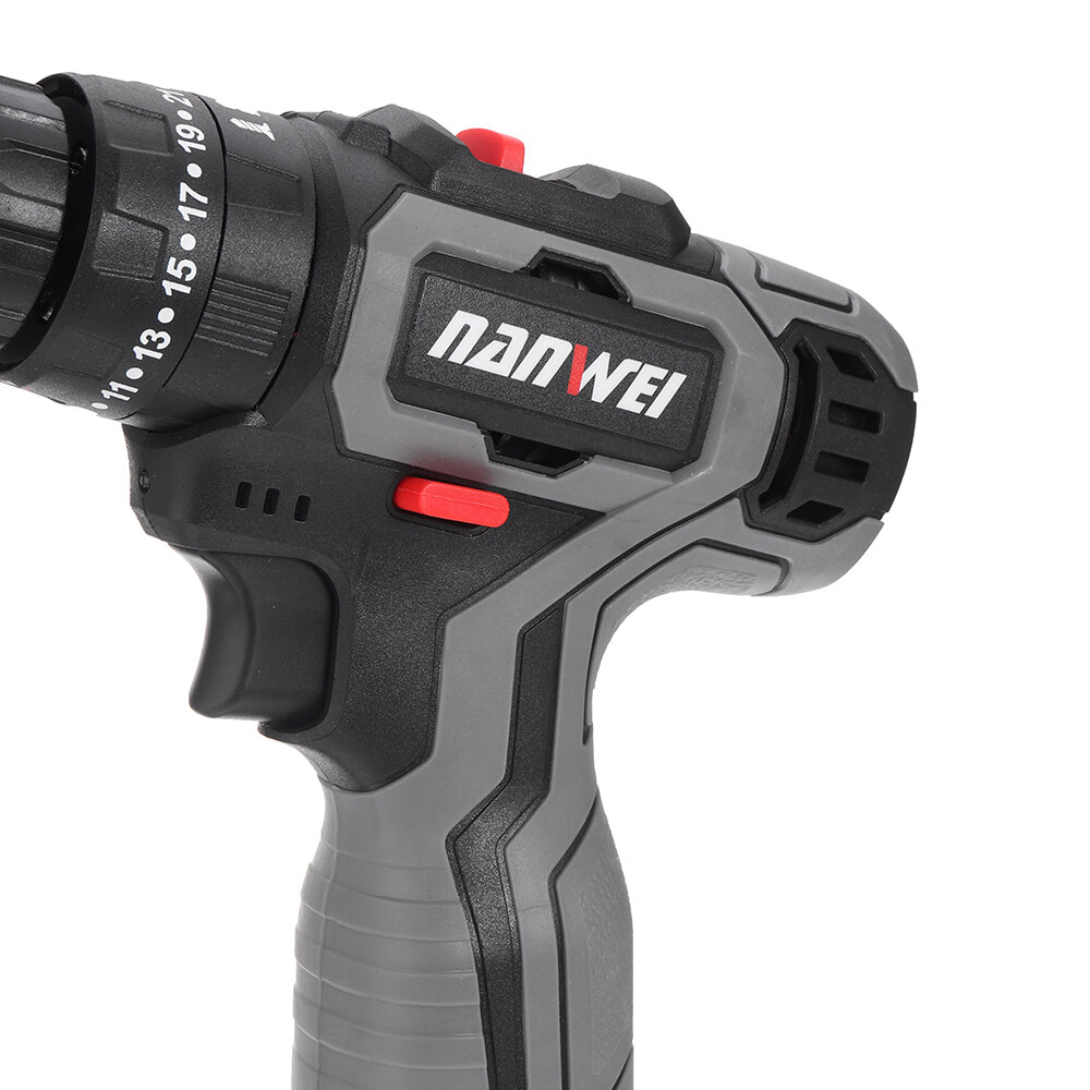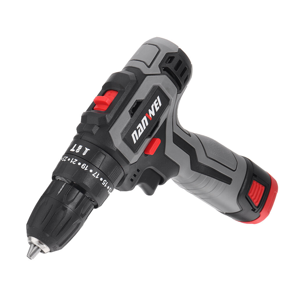 Main Features: This versatile tool offers three functions: impact, flat drilling, and screw driving. It’s capable of drilling through a variety of materials, including red brick, cement walls, steel plates, metal, iron, and wood. The high-power pure copper motor ensures robust performance. The quality battery provides approximately three hours of endurance. The electricity quantity display allows you to monitor the power situation easily. The drill offers two-speed regulation with stepless speed adjustment, ranging from 0-350RPM to 0-1350RPM, making it suitable for a wide range of applications. It features 25 clutch controls, delivering 25 torque settings for various applications. The positive/reverse switch is conveniently located on one key. Press the left side for positive rotation and the right side for reverse rotation. The LED working light provides illumination in dark spaces, enhancing your work efficiency. The ergonomic grip handle ensures comfort and control during use.
