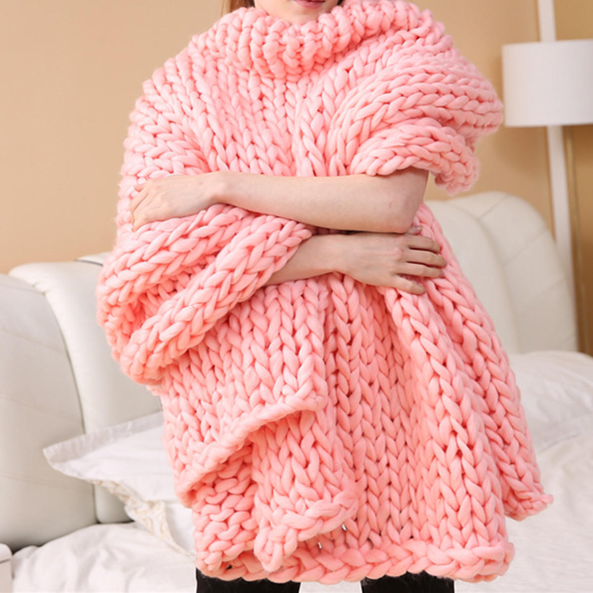 180x120cm Warm Hand Chunky Knitted Blankets Thick Yarn Wool Sofa Bed